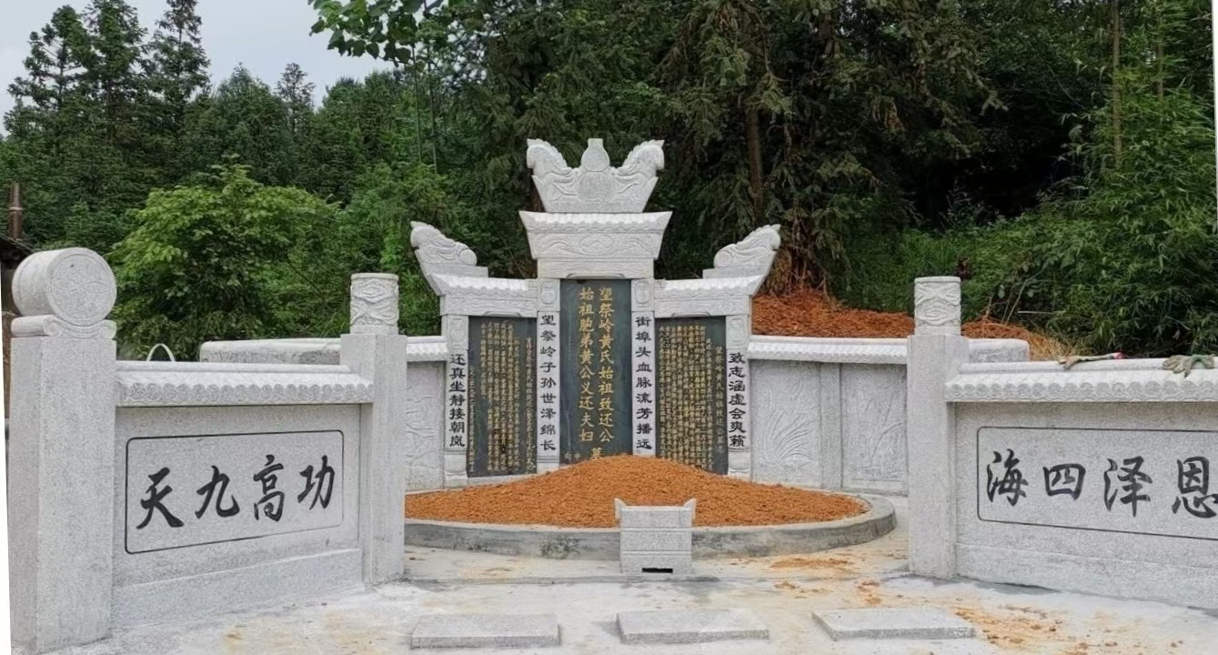 本次重修工程,由黄友民、黄耀武宗亲担任项目总负责人,统筹整体事宜;黄平衡、黄光亚宗亲担任施工总指挥,主抓工程落地;黄立安、黄廸辉、黄松树三位宗亲协同倡议推进,文辞由黄松树宗亲亲笔书写。黄恩环、周小兰夫妇率先捐资壹万元,众宗亲踊跃襄助、慷慨解囊,捐款者芳名已勒石立碑,恭置于墓侧,以志其功、以彰其德。工程于公元二〇一九年己亥春季肇始,秋季告竣,重修后祖墓形制庄严、气象一新,松楸葱郁,碑石昭然,既妥先灵,亦启后昆,望祭岭黄氏家风自此更盛,祖泽绵延可期。