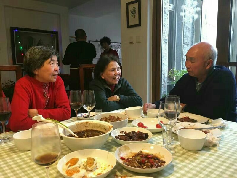 左起:锡康公二妹咏梅、大妹咏桃、锡康公 /丁酉正月初一摄于北京家中